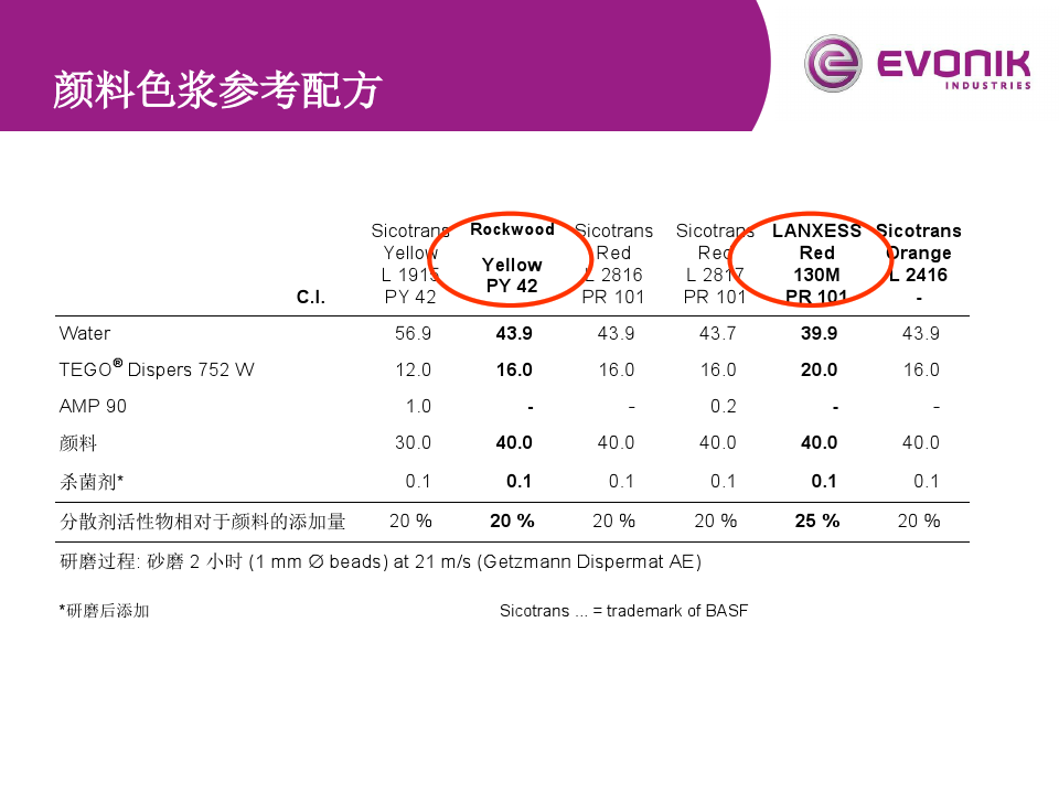 應用:不含基料/含基料的顏料濃色漿-用于汽車漆、工業漆、高性能色漆涂料