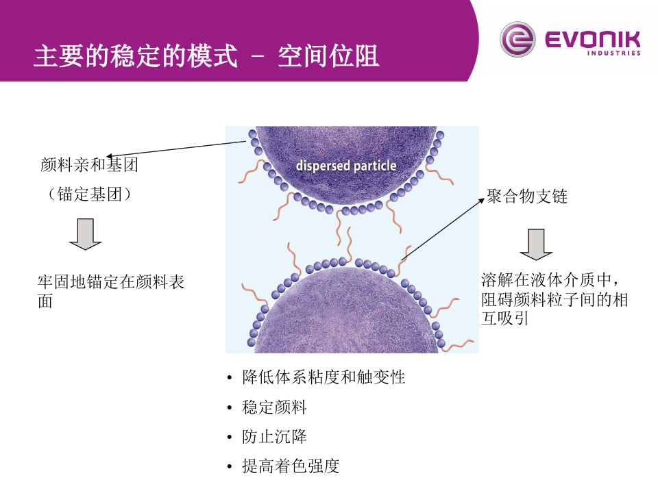 降低研磨粘度(降低顏料顆粒間的相互作用) 高的顏料/填料含量