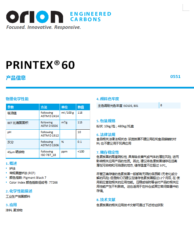 歐勵隆特種炭黑,PRINTEX 60,德固賽炭黑色素